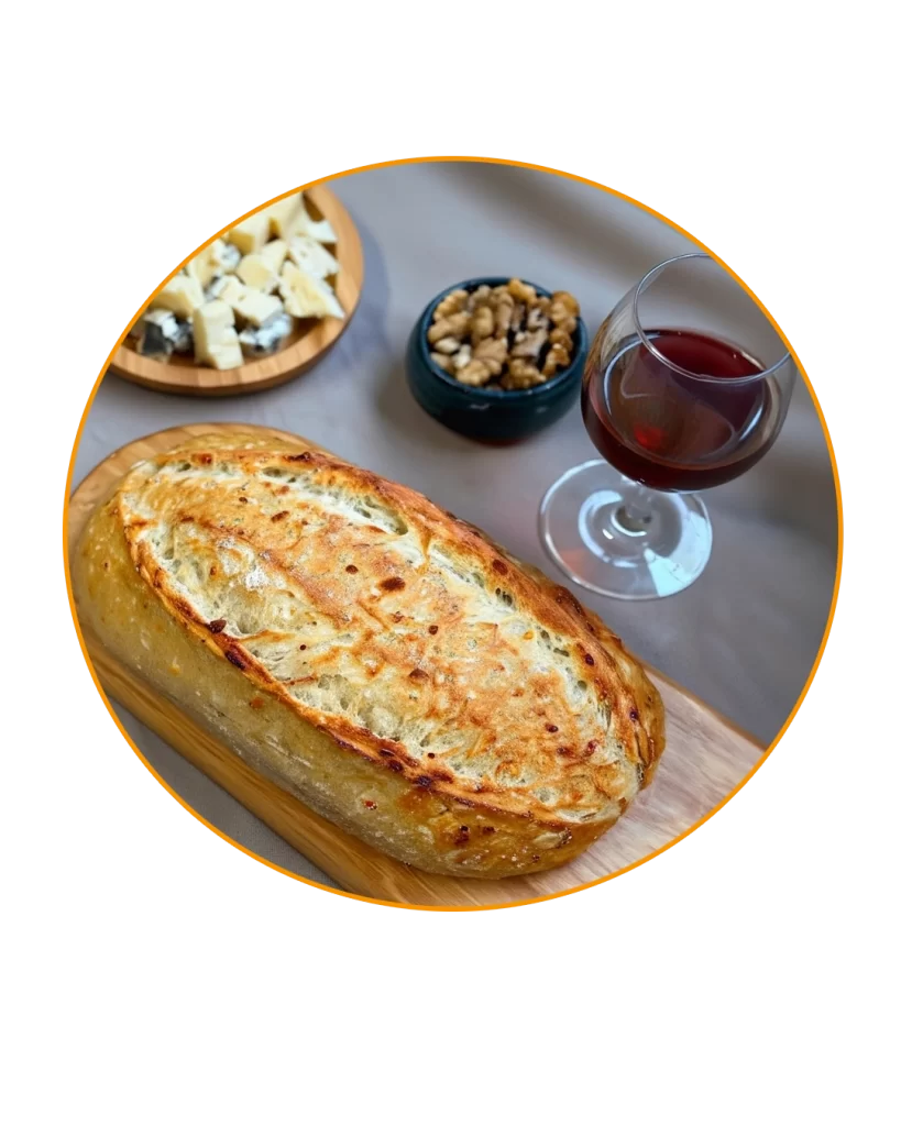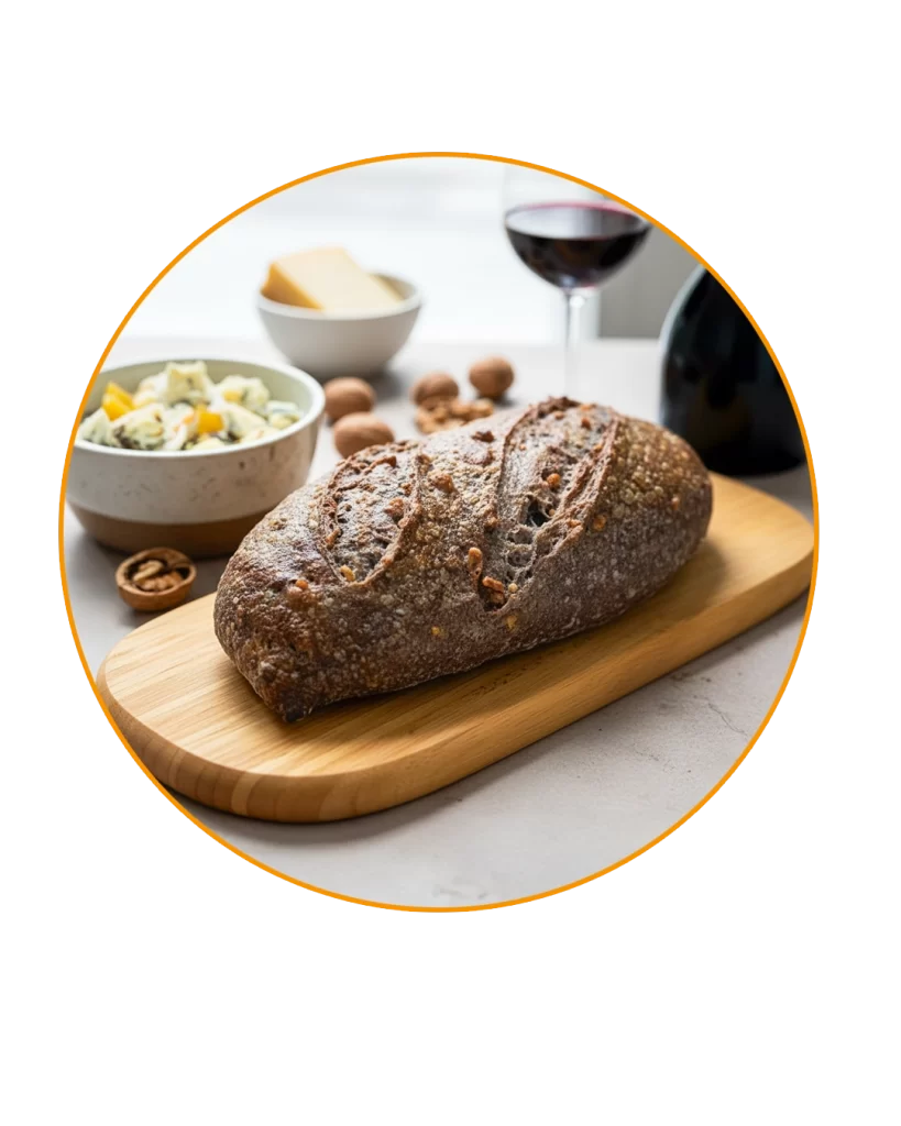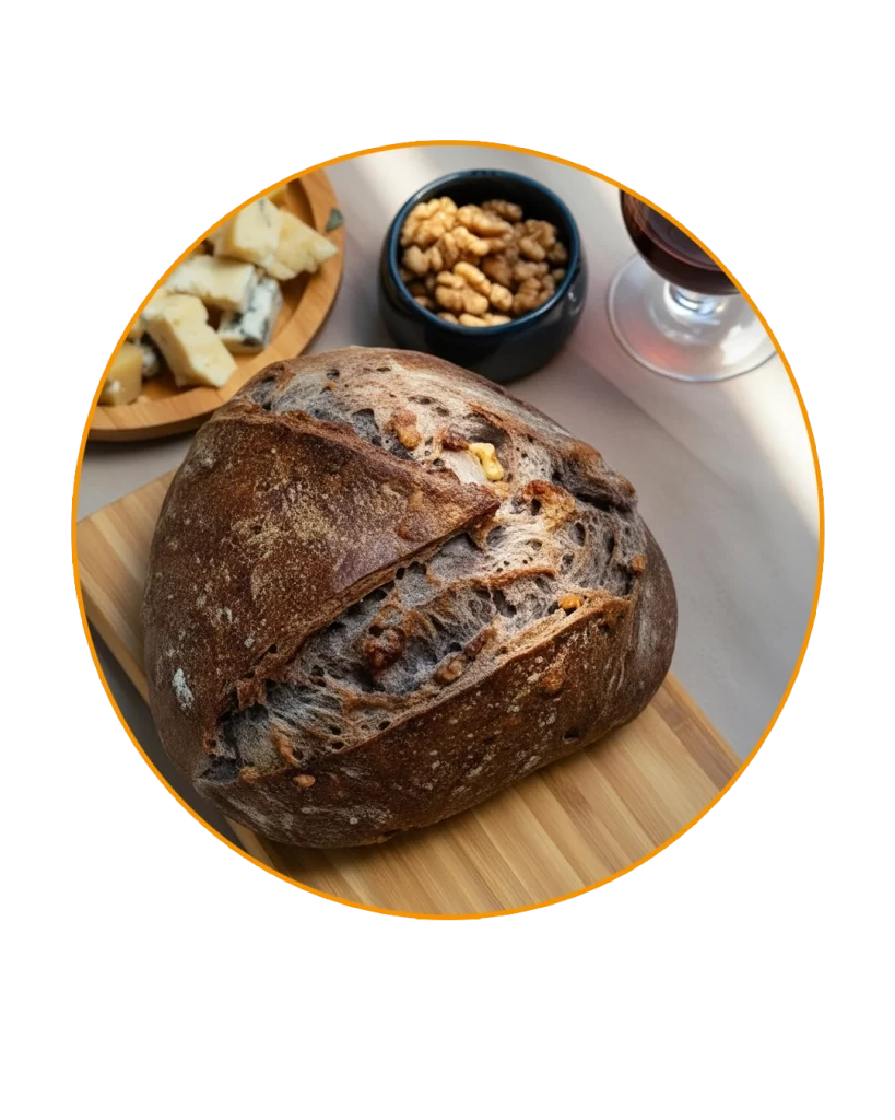 O Pão de Centeio e Nozes é uma receita artesanal que combina a farinha de centeio, proporcionando uma textura densa e um sabor levemente amargo e terroso, com nozes que acrescentam crocância e um toque rico e amendoado. Essa combinação cria um equilíbrio perfeito entre os sabores, tornando o pão uma opção deliciosa e única.